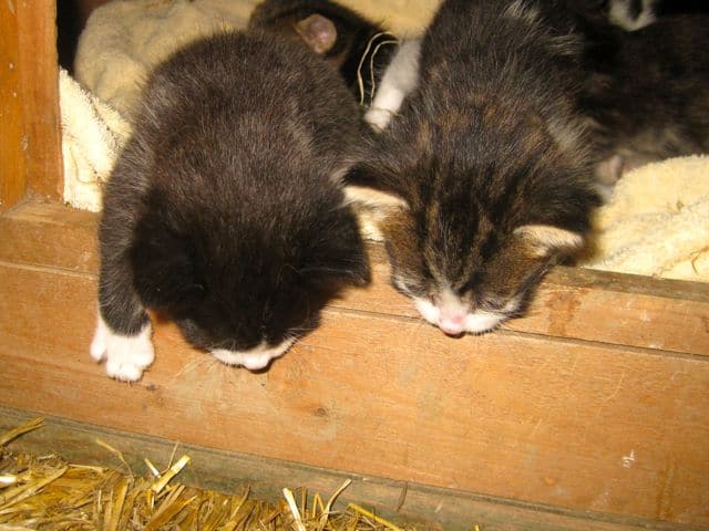 That tastes good! Life is a survival effort for the wild cat’s kittens. These little fellas were born on the straw stack, we don’t know where mum came from. Either she was brought here and released or found her way to sanctuary on her own. The desire of a pregnant cat to find safety is very great, she knew that she could find shelter, food and safety with us. Touching her is out of the question at the moment though. There’s such a difference between these little ‘ragamuffin’ kittens and the ones born to the cats whose pregnancy has been helped by comfort and good food. These little kits are different sizes and are smaller than average. We’re handling the kits and keeping them tame with lots of fuss. Although they are light in weight, they make up for it in survival spirit. A bit of the Bear Grylls about some of them! Already, the tiniest has learned to eat and although his little teeth are barely big enough to tackle kitten food, he keeps chewing away.