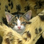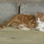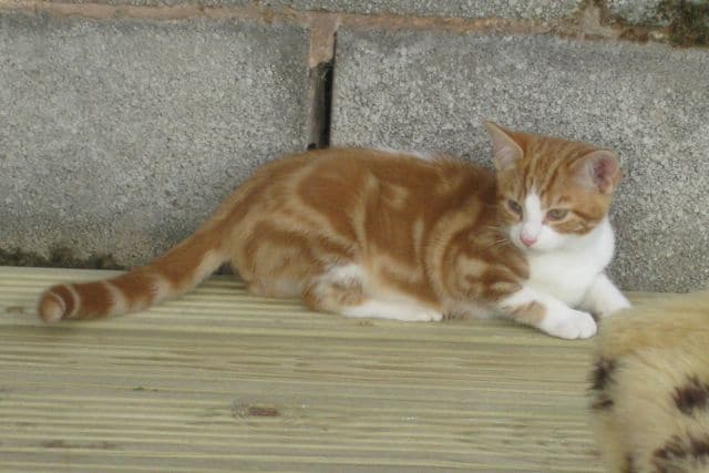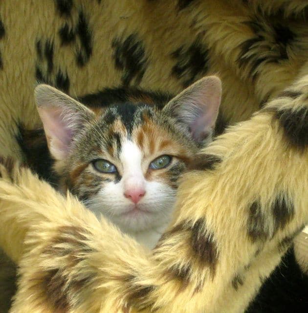 Miss Calico kitten is a proper little lady – she always finds the cosiest place to sleep and gets herself really snug. We’re looking for a home for this ginger, tabby, black and white kitten – no need to check whether she’s male or female because all cats this colour are girls. So that was easy. She has a charming way with her and is laid back and polite – at the same time she’s very playful and loves ping-pong balls and screwed up silver paper. All the kittens have different personalities – Flashman is definitely a poseur!