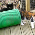 Re-homed – thanks folks. He’s also the extrovert of this little gang. They are all good friends although not related. There are also two all blacks in the group, one a bit smaller than the other. Black cats aren’t called ‘lucky’ for nothing – without any harm to themselves they are said to absorb negative influences, keeping them away from you. I particularly like black cats whether they are lucky or not, there’s something very reassuring and grounding in seeing a black cat slipping in and out of the shadows. Like all cats they have their special secret places. The black cats we already have in the sanctuary all do their own thing and have private lives, only coming out to chat when they feel like it. And that’s good, cats should be cats some of the time at least.