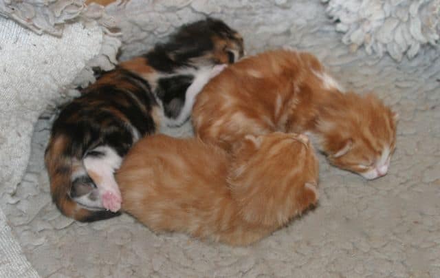 Their mum was brought in already heavily pregnant, she’d been wandering around back gardens looking for someone to feed and shelter her. She’s a young cat and friendly but very unsettled. Tilly gave birth to these three little ones last week, they are a bit smaller than usual probably because mom didn’t have enough to eat and was stressed by being abandoned. We were told that her people had moved away. Strange how people often leave the cat when they move. They are beautiful kittens though and she is feeding them so they will come on I am sure. It’s fortunate there are not more of them because I doubt if this runaround lady cat would be able to care for them. She is a quick little cat and not the most caring of mothers. As soon as they’ve nursed she wants to leave them. Some of our other mommy cats are devoted and fiercely protective of their babies. I doubt this one would have stayed with her newborns if she hadn’t been safe and confined in a maternity room. When cats are stressed themselves, the trials of motherhood are not foremost in their mind!