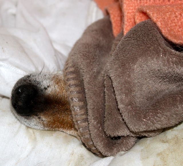 His eyes were pits of blood when he first came in, now the inflammation is going and they are beginning to heal. This little dog is as good as gold to treat, he lets us put his Aloe Vera gel on the sore places, without a murmur. It’s soothing and will feel good.
