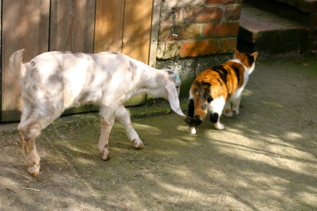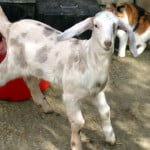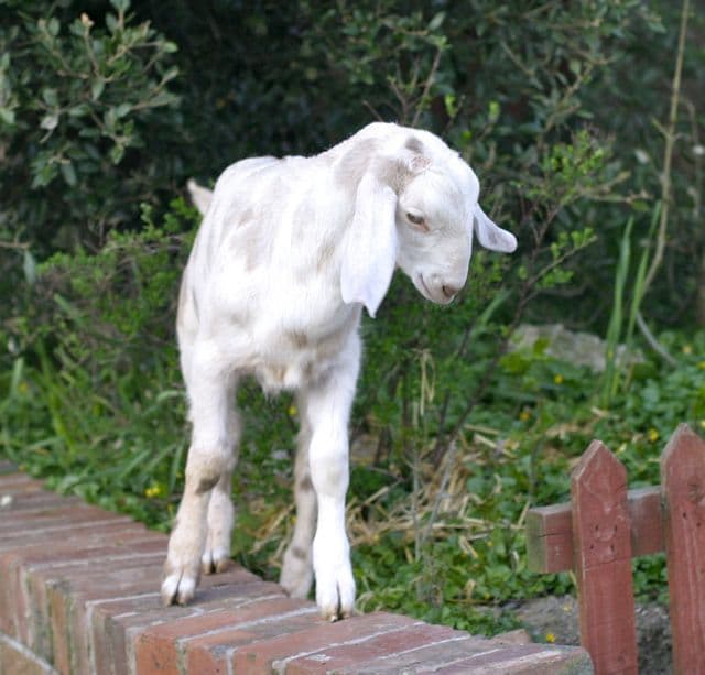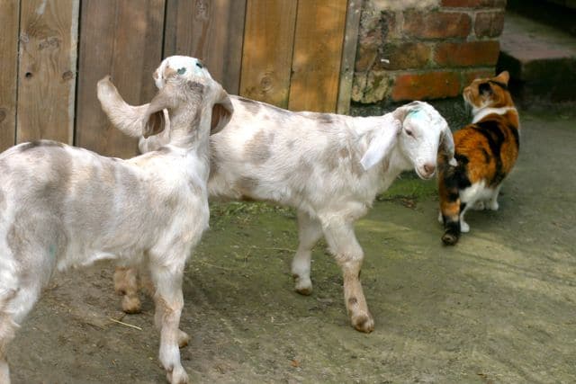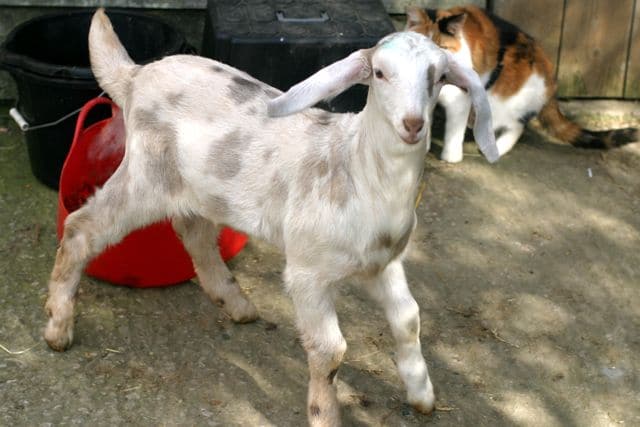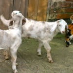Few animals are prettier or more friendly and playful than young goat kids. They seem to have a natural affinity with human children and love to play with them. When they grow up they are still as friendly but they become more sedate. Kids need milk till they are six months old, some people feed it to them for much longer to make them grow bigger and quicker. You can bottle feed the kids, either with milk from their mom, or by giving them bought in powdered lamb or goat milk replacer. People do this so they can have the lovely goats milk for themselves. Hmm. It’s a bit like bottle feeding a baby, last feeds late at night and then as soon as you wake up in the morning. Suckling mum is best and more natural, the kids will be healthier and stronger, they won’t be as tame though unless you spend a lot of time with them and get them socialised. When we artificially feed any young animal we imprint them to see us as their mother and they’ll follow us around for the rest of their life. Birds, when hand reared, become imprinted and won’t leave and some (birds of prey for example) cry constantly. A captive bird that calls non-stop is an imprint. Lambs are sweet when they are small and having their bottle, it’s not so good when a huge ewe comes hurtling down the field demanding to be bottle fed every time she sees you!