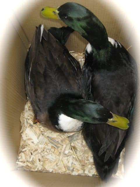 William and Harry are not wild birds and have been reared in captivity – they are very tame and can be picked up and handled. They would stand no chance in the wild. Ducks respond well to humans and recognise and become affectionate with their carers. If you can give these two fellas a safe home please get in touch. Safe is the important word – their pen would have to be very secure from predators, foxes and dogs. They need a hut to go in at night and water is essential – a man made pond which must be kept clean or running water or a pond is best of all.