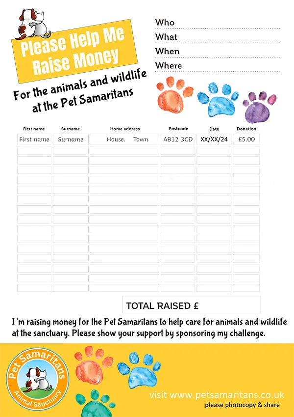 Setup a page today using GoFundMe and ask people you know to give to the Pet Samaritans. We’ve added some logos, sponsorship forms and posters below to get you started. Please let us know if you are fundraising for us so we can share too.