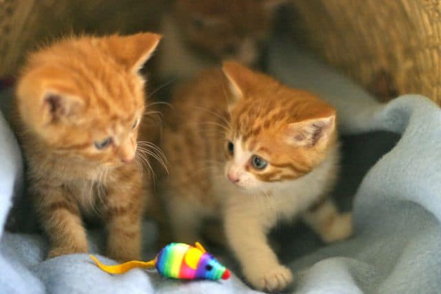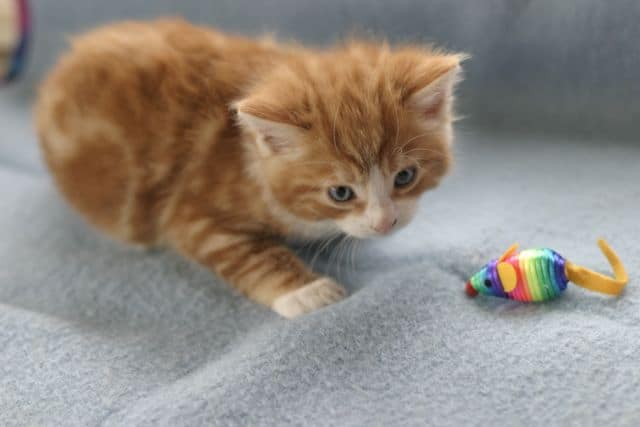 This is Marmalade who isn’t so interested in the mouse, even though it’s filled with catnip. He wants his tea. The kittens are eating well, kitten pouches and baby cat biscuits. As well as mother’s milk they are lapping at kitten milk too.