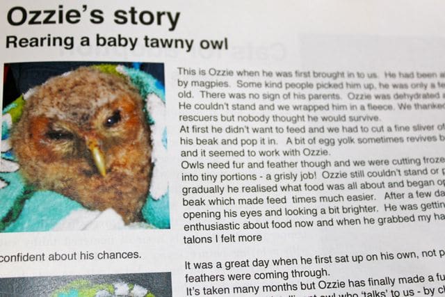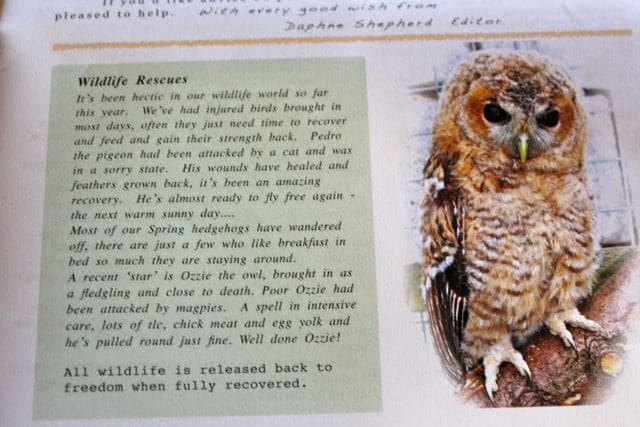 Our latest newsletter is ready now with updates on owls, birds, wildlife rescue, cats, hedgehogs and more. We’ll be happy to post a copy out to you – free to members (so why not join us now?) or £1.25 inc. postage. You can call and collect from Reception if you are in the area, a small donation to cover our printing costs is appreciated. We’re open between 11.0am and 3.0pm every day.