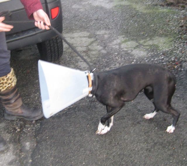 Cindy is unsure of people she doesn’t know very well at the present time, but is loving with those she knows and trusts. She won’t be happy till she gets the collar off. We daren’t risk it unless we are with her – the tail, what’s left of it, might still be a temptation for her. We don’t want to go through all this again and neither does she.