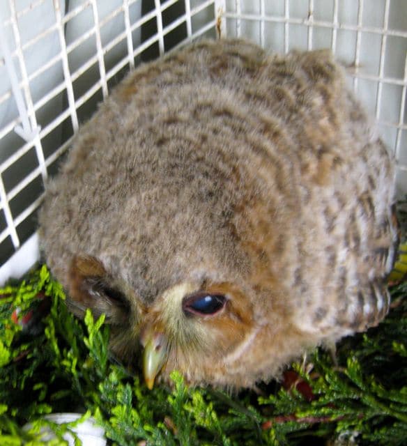 Adult owls sit upright but Ozzie settles down for a snooze as soon as he’s dined. He nestles into his bed of leaves and looks quite snug, his eyes half closed and it’s nap time till the next feed in a few hours time.