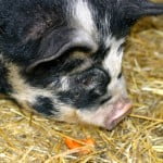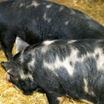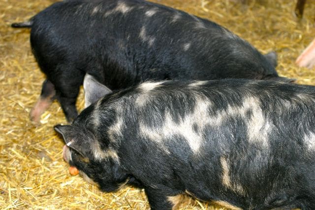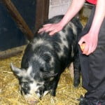 Pigs are, contrary to popular belief, very clean creatures and if they are given the opportunity to go outdoors, will always make their own toilet arrangements and never soil their bed. So if you put a couple of bales of straw in their shed it will stay clean. They are only messy if they are kept in too small an area, once a pig has decided where the toilet is, they will not go in any other place. It’s said that pigs are the creatures most like humans in their make up, their blood and organs are similar to ours. They are nowhere near as destructive, aggressive or polluting as humans though!