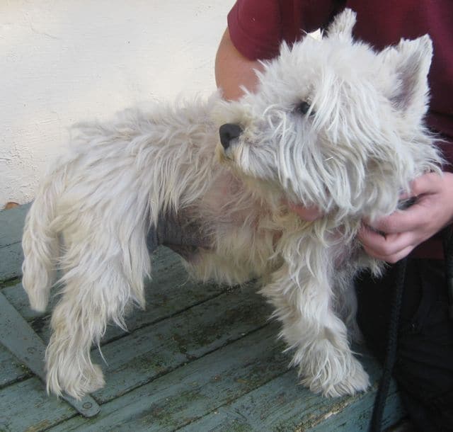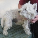 Perro is improving – but slowly. He is better in himself and is a happy little dog now. His sore patches are healing but his skin is still inflamed in places. We’ve had dogs in before with similar skin problems, although not quite so thin, and have found that a holistic diet is one of the main aids to recovery. Perro likes oily fish and is taking all his dietary supplements well. Dorwest Herbs have an excellent range of herbal vitamins for skin conditions and he’s having these every day together with herbs and olive oil – it’s a mediterranean diet for Perro – minus the red wine! Keeping him off additives is important so he has only natural chew sticks and nothing with colours or preservatives.. Perro is having a completely natural and organic diet to get rid of the toxins in his body and help his skin get in better shape. It’s a slow process but he is getting better. It may take several months or even longer to get him back to full health. He’s put a bit of weight on but again this is a slow process because he is so very run down. I wish he’d keep a coat on but the little rascal is a houdini and can get out of any sort of fastener. He’s enjoying little walks and the fact that he is starting to be a bit mischievous is a good sign of him getting back to normal.