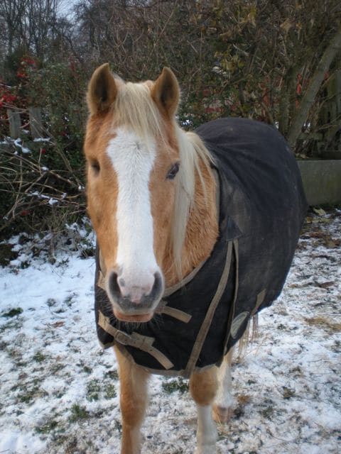 We are carrying water to all the horses and goats as the pipes have frozen. This arctic weather has certainly caught us out. When we eventually slid and slipped to the fodder merchants, we found there were long queues. Storage of big quantities of pony food is a problem – rodent proof bins would be good and a new feed shed. And while we’re dreaming, what about a big dutch barn and then we could order hay and straw in bulk – it would be cheaper that way too. Krystal leaves us to think about all these problems, she is a gentle soul who likes to be out for a short while only, she feels the cold. A little walk is good for her though and stops her joints getting stiff. We also need a big tub of cod liver oil for all the ponies, it makes a big difference in the winter months.[donate]