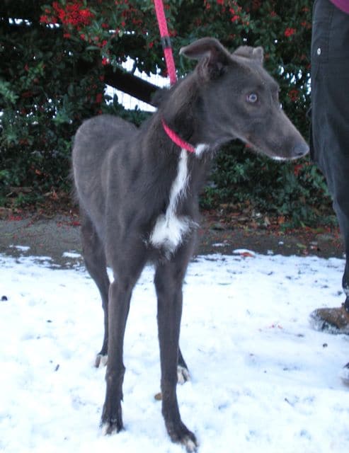 A typically thin stray dog. Why are there so many in this emaciated condition? This one is Misty and she is a lovely young lurcher girl. We are making progress fattening her up but it is taking a while. Misty doesn’t like to keep a coat on either and is quite the Houdini at getting out of whatever sort of jacket, fleece or jumper we try to put on her!