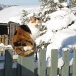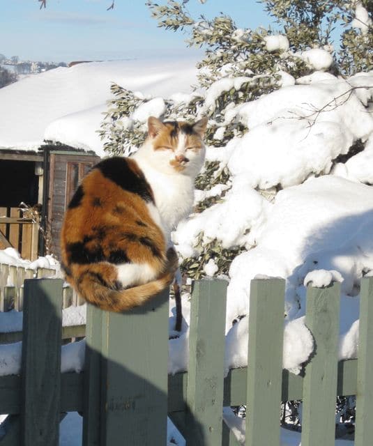 Grondel (a golden oldie permanent resident) doesn’t seem to mind the snow whilst the sun is out. She dashed back inside a few minutes later though.