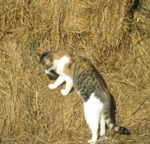 This is an old chap called Kimme, who still has this kind of lifestyle and is nearing twenty, hale and hearty. The main point I am making is that this is a ‘green’ life with a very small environmental footprint. Did these cats have toys? They were (and are) certainly very playful but with natural resources – chasing leaves made a great game. Kimme has been at the sanctuary for many years and is still active and playful. He does a lot of mousing (or pretends to now he’s getting on!), socializes with his pals and leads an old fashioned healthy cat life. Kimme loves fish and meat scraps and will only eat convenience food if he is very hungry. ‘What is this?’