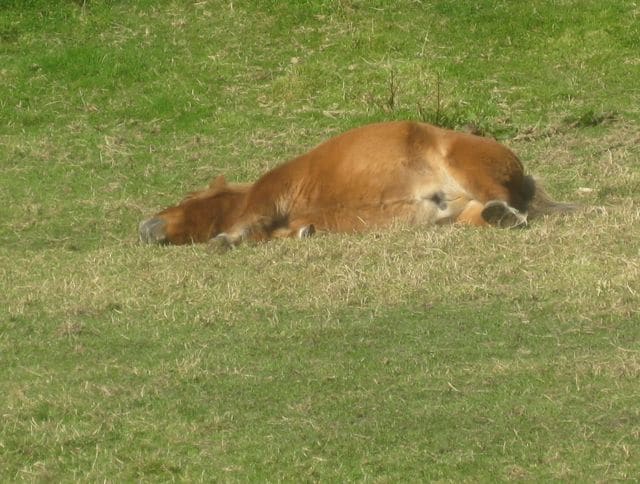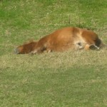 The’ve gone now so I think I’ll go back to sleep. Ponies look quite strange when they are lying flat out and often people who aren’t used to seeing them like this are afraid that they are ill. We’ve had calls in the past to say ‘your ponies are unconscious’. Thankfully they are just asleep!