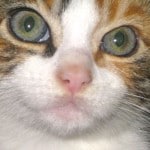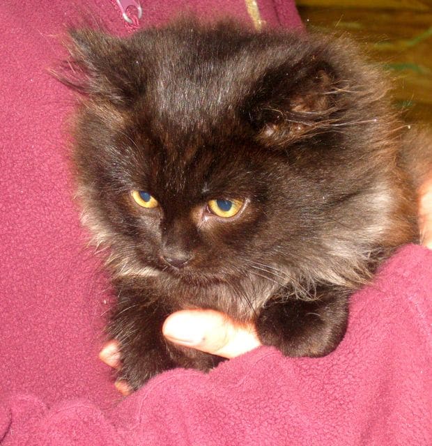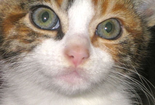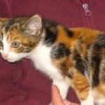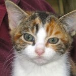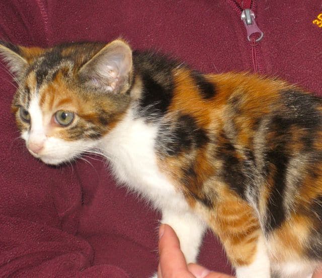 Re-homed – many thanks – All kittens are pretty but our latest rescued tiny tots are little stunners. They are all different shapes and sizes but the one thing they have in common is their sweet faces and lovely personalities. This little girl is called Majolica, she is a calico and beautifully marked with rich red, black and white colouring. Her eyes are something special with a ‘looking deep into your soul’ expression. She’s probably just thinking about when the next pouch is coming!