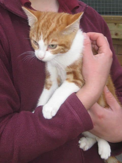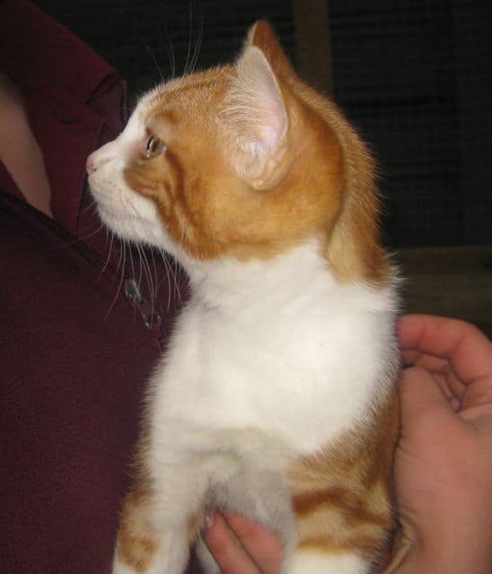 FLASHMAN – could be a bit older than the rest, he is a bold and beautiful kitten, very playful and the first to explore somewhere new. He is very well marked with red tabby stripes and a pristine white bib.