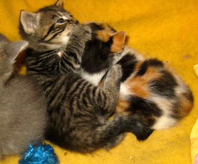 Her little ones are beautiful and have distinct personalities already. Wendy is the grey girl and she is extrovert and confident. Mario is the mackerel tabby boy and he is a little rascal – always ready for a play fight. Majolica is a sweetie, a bit shy and the smallest of the three.