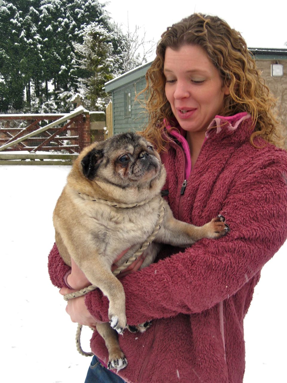 When Pugsie’s owner became seriously ill and was admitted to hospital it was decided that it would be best for this little dog to come into the sanctuary as a permanent resident. As can be seen from the photo, Pugsie is very overweight so a light diet and a gradual increase in exercise was his new regime. Like most pugs, he is a super little chap, full of personality and very easy going. Giving him the exercise he needed proved difficult from the start. Pugsie’s nails were very overgrown and although we’d clipped them, he was still lame. Was it the sore patch on the top of his paw? No, that didn’t seem to hurt him, the problem was still with his nails. He’d been licking his paw because he had a wound on one of his pads – the nail had actually grown into the flesh.