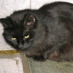 I’ve called her Cilla (didn’t take much figuring!) she really is a lovely jet black with green and gold eyes. Cilla has a thick and shiny coat as do most cats who live outside. She isn’t a smiley cat though, her expression is watchful – do I trust you? No, I don’t. There may have been bad experiences along the way. She does purr when she feeds her kittens and the only time she looks happy is when she’s with them. Mommy cats nearly always purr to their kits, it’s a way of bonding and letting them know where she is when they don’t have their eyes open. They love to nurse their babies.