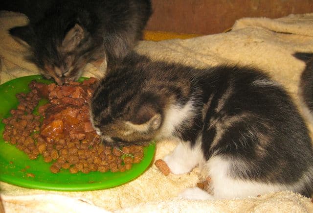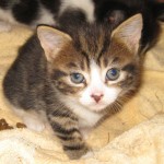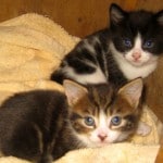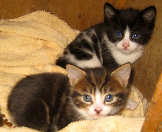 The tiny kittens born on the straw stack are gaining weight and becoming a bit more lively. They’re eating well now and tucking in as soon as I put the kitten food out, there’s less of the desperate wolfing it down that we saw when we first fed them. Two of them (the ones above) are a bit bigger and not as hungry as the rest. My guess is that these have had more of their mom’s milk. The others are definitely smaller and eat for longer. Mum and I have come to a bit of an arrangement. I leave the kittens with her all day but then shut them up in a cat cabin where she can see them at night. That way I know they can have as much food as they want and she can’t take them off to be wild cats. She might mean it for the best but they would surely die. This mommy cat doesn’t have enough milk to feed her babies and doesn’t seem to have any inclination to catch anything for them to eat. This makes me think that she is a domestic cat and not feral. Cats have to be taught to hunt and it’s the ones who live on the edge who become the mousers. If they don’t learn to hunt at their mommy’s paw, they’ll never learn.