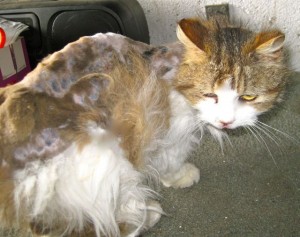 Misty when she first came in – on the brink of death. An amazing cat and a great happy ending.