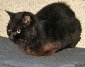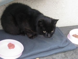 When Molly arrived yesterday she was very unsure of herself but she is a lovely friendly cat and we soon had her purring. Her years living outside have taken their toll, she is underweight and her coat is in poor condition. How old is she? The vet thinks she may be around ten, perhaps a little more.