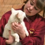 He’s pure white and Samson is not only good looking but he has a wonderful temperament. All the other cats around the sanctuary think he is quite a hero and he gets more than his normal share of admiration. Samson is quite a laid back chap and although he likes to have a roam round and check out his pals, he loves home comforts – cushions, heated pads, fleeces, soft music, a saucer of chopped up meat with jelly….. well, you get the idea. Samson came in through no fault of his own and would be a perfect companion for any cat lover. He loves fuss and cuddles and is always pleased to see you. A home where he is the ‘one and only’ would be the best although we find him to be sociable with other cats, he does love to have your sole attention ….keep stroking, just behind my ear, yes that’s the spot … purr, purr, purr.