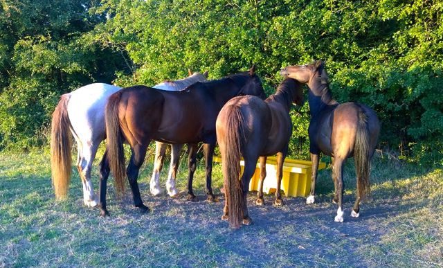 Here are some of our rescued horses enjoying a drink, in winter it’s food they are always wanting but these hot days they drink a lot of water. We don’t have water laid on to the fields so every drop they consume has to be fetched for them. These are our medium sized herd, then there are the big lads and the tinies are kept separately. This is (left to right) Rhogan, Misty, Dallas and Bubbles – all good friends – they empty their water trough within minutes and then we fill it up again! One day we’ll get water laid on and life will be much easier.