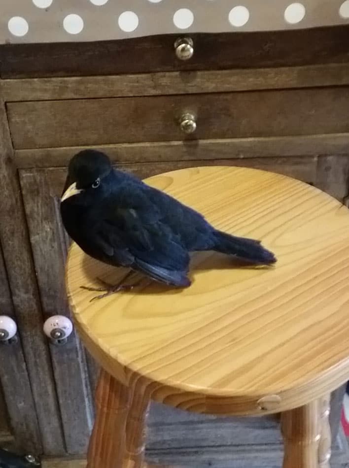 Perry the blackbird came in for a warm too. He’s a funny little bird.