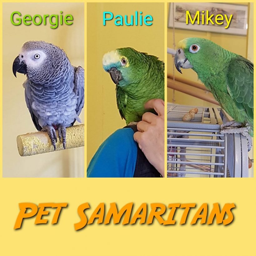 We thought talking to the animals was something Dr Dolittle did in films but three beautiful parrots have had us in stitches with their witty banter. Say hello to Georgie, Paulie and Mikey. Unfortunately their owner could no longer look after them due to a terminal illness and asked the Pet Samaritans to help with our lifetime pet care service. After 20 years with their family, we are really thankful they have settled well with us and have taken the change in surroundings all in their stride.