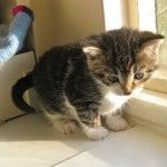 What a difference a week makes! Tansy’s kits are growing rapidly, starting to explore and take an interest in food. This one is a boy cat (I think!) called Tomkin. At this stage the kittens sleep together, play together and eat together. Their personalities are starting to come through now, the female kitten (Twiggy) is quite shy but loving and cuddly when you pick her up. Tomkin doesn’t go far from the nest, he’s a mommy’s boy. Todd is the bravest and has been venturing out on his own. He’s the leader of the pack and confident enough to go on the prowl for food …..