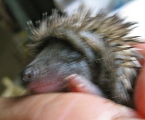 Minnie (shown here) is still the easiest to feed and handle, she uncurls easily but this may not be such a good sign, sometimes weaker hoglets can’t find the strength to curl up in a tight ball. But she does take milk and that is the main thing.