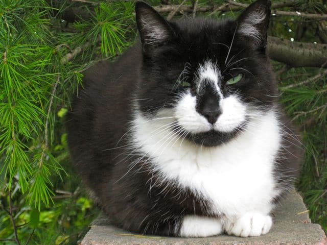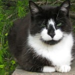 Patrick is a laid back cat but the strange thing about him is that he never has a hair out of place. He is the most photogenic personality in the sanctuary, always posing beautifully in a scenic location – by the pine trees, on top of a gate post, by a tub of flowering plants – he picks the right spot every time. Most cats dash off when they see you fetch the camera but not our Patrick – he waits patiently, smiling and posing, turning his head this way and that – get my best side will you – until you have the shot. While the other cats are difficult to photograph, they start scratching or yawning or turn their head or decide to sit in front of the dust bins, this cat never puts a paw wrong. With a certain instinct for the photogenic, he is never ruffled, doesn’t ever look ungainly or awkward, Patrick sets the scene and always the right background. There he sits until he sees the camera and then he starts to preen. A vain cat? An attention seeker? Or just a natural model? I think so.