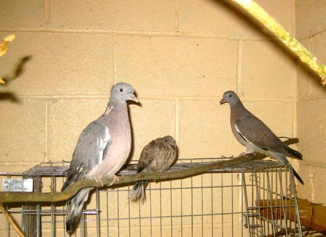 There is no animosity between pigeons, they all get on well with each other. Squabbie is on the left, he is still tame and flies on to my arm and eats from my hand. Thankfully he feeds himself now unlike baby squabbie who can’t get the hang of it as yet so he is still being hand fed – a messy process with pigeons as they don’t want to open their beak but want to feed from their mother’s crop. He’s doing well though. Big squabbie is concerned about him when I pick him up to feed – you’re not hurting him are you? He gets agitated until baby squabbie is back on the perch next to him. Maybe ‘he’ is a ‘she’?