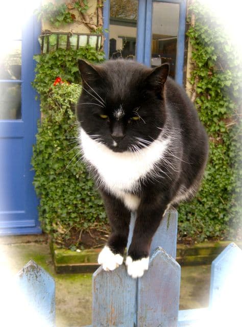 Most visitors to the sanctuary will have met Timmy, a quirky black and white boycat who has been with us for over a year now. He began life here in a cat pen but that didn’t work, this character cat has an attitude problem at times. Next we gave him his freedom and after an initial running wild period he found his way round and came back for bed and board every day. Now Timmy is a favourite cat and follows us around everywhere we go. He’ll greet customers and is usually to be seen balancing on top of a fence post seemingly inviting you to fuss him. This is an act though and best advice is -Don’t! Timmy is a free spirit and lives life on his own terms, being touched by strangers (and even people he knows sometimes) is definitely not advisable. Tim is a loner and doesn’t pal up with any other cats, it’s us he likes – but only so long as we only look and don’t touch!