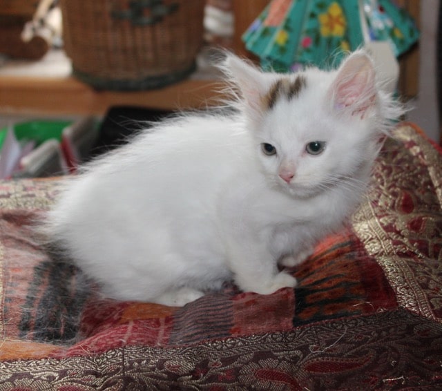 Snowball is still with mum although she isn’t feeding him now but does give him lots of love and fuss and cleaning. He is the sweetest little chap, a bit fluffy and spotlessly white, he loves to be cuddled and have a play. Snowball is quite a character and pretends he is a fierce hunter sometimes, toy mice have no chance!