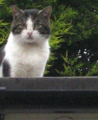 With his big macho head there is no doubting that this is a tom cat. I’ve never seen him around before and he seems pretty wild. This pic is with a zoom lense as he was sitting on the roof of the visitor centre. Well, it is attractive venue for him, biscuits on offer, comfy beds and lots of girl cats. I wonder if her realizes that most are spayed? He stayed around until dark, chatting up the residents. There are scars and battle wounds on his face – I hope he leaves our boycats alone, a neutered cat is no match for a toughie like this one. It’s always a problem when an entire male cat comes calling – our happy routine is disrupted and all the cats get in a fluster. First we have to find out whether he has an owner or is living wild. If he is, we’ll coax him indoors and tame him. When we can handle him and get him in a basket, we’ll have him vaccinated. If we can’t relocate him as a tom cat, he will be neutered and then it’s a life of domesticity, fish suppers and no more he’ll go a roaming.