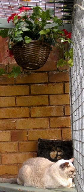 Tamba is a pedigree cat, a Cappucino Tonkinese. Isn’t that grand. She has a lovely temperament and is settling in quickly. She has soon discovered the outdoor run and is enjoying watching the world go by. The other cats keep coming up to say hello. I don’t think she is used to neighbours and doesn’t quite know what to make of them. A dish of petit pate went down well though so she has a good appetite.