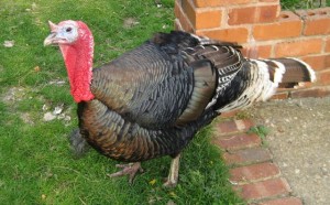This is Noel who is one of our sanctuary resident turkeys. He’s been with us for nearly ten years now and is a fine bird, although showing his age a bit. We don’t know how old he was when he was brought in, we rescued him one Christmas to save him from being a dinner.