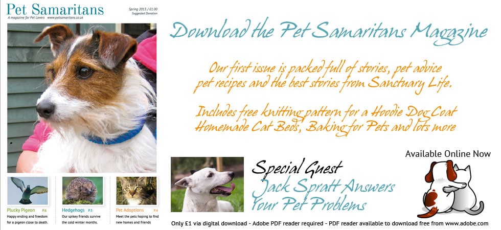 Buy a Pet Samaritans magazine and help the sanctuary. A single issue is £2.00 including postage, it’s £10 subscription for a year and that’s quarterly – four issues. It’s packed with news, views, rescues, hints and tips and it’s a good way to boost our funds and have a good read at the same time.