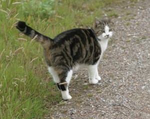 Cats do go walkabout sometimes – this is one of our residents called Myrtle who enjoys a jaunt out in to the big wide world, she’s a bit of an adventurer but usually just up the fields or for a bit of ‘wild-wooding’. Then she’s back again. It’s more dangerous for cats in town or suburbs. They sometimes get picked up and taken home by strangers. Never pick a cat up unless you know for sure she is lost or abandoned. It’s mostly likely that she will know where she lives and be someone’s else’s pet.