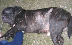 This poor dog came in as a stray and had to be treated straight away. He was feeling very sorry for himself. But mange can strike even the most well cared for pet. The skin can be covered in pimples, or it can be hairless. It might be thickened and oozing and all this is caused by a mite that burrows under the skin. Sometimes the mites multiply beyond their normal levels and the situation becomes acute.